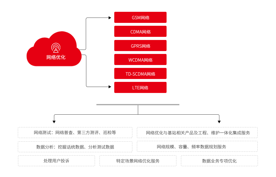 公司具有專業(yè)的網(wǎng)絡(luò)優(yōu)化分析團隊,具備多廠家、多運營商的綜合性網(wǎng)絡(luò)優(yōu)化能力,針對GSM、CDMA、TD-SCOMA、WCDMA、LTE等多種制式的無線網(wǎng)絡(luò),提供整體的優(yōu)化解決方案,包括建網(wǎng)初期相后期擴容工程的工程網(wǎng)絡(luò)優(yōu)化服務(wù)、運維期間的日常網(wǎng)絡(luò)優(yōu)化服務(wù)、階段性分析解決網(wǎng)絡(luò)瓶頸的專項網(wǎng)絡(luò)優(yōu)化服務(wù),通過測試數(shù)據(jù)分析、話統(tǒng)數(shù)據(jù)分析,結(jié)合天饋線系統(tǒng)優(yōu)化、無線參數(shù)優(yōu)化話務(wù)均衡等方式,對網(wǎng)絡(luò)性能指標(biāo)進行優(yōu)化提升,最終達到提高網(wǎng)絡(luò)質(zhì)量以滿足終端用戶需求及提升網(wǎng)絡(luò)設(shè)備利用率的效果。